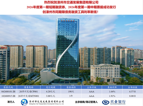 漳州交通集團成功發(fā)行7.2億元債務(wù)融資工具,票面利率創(chuàng)新低